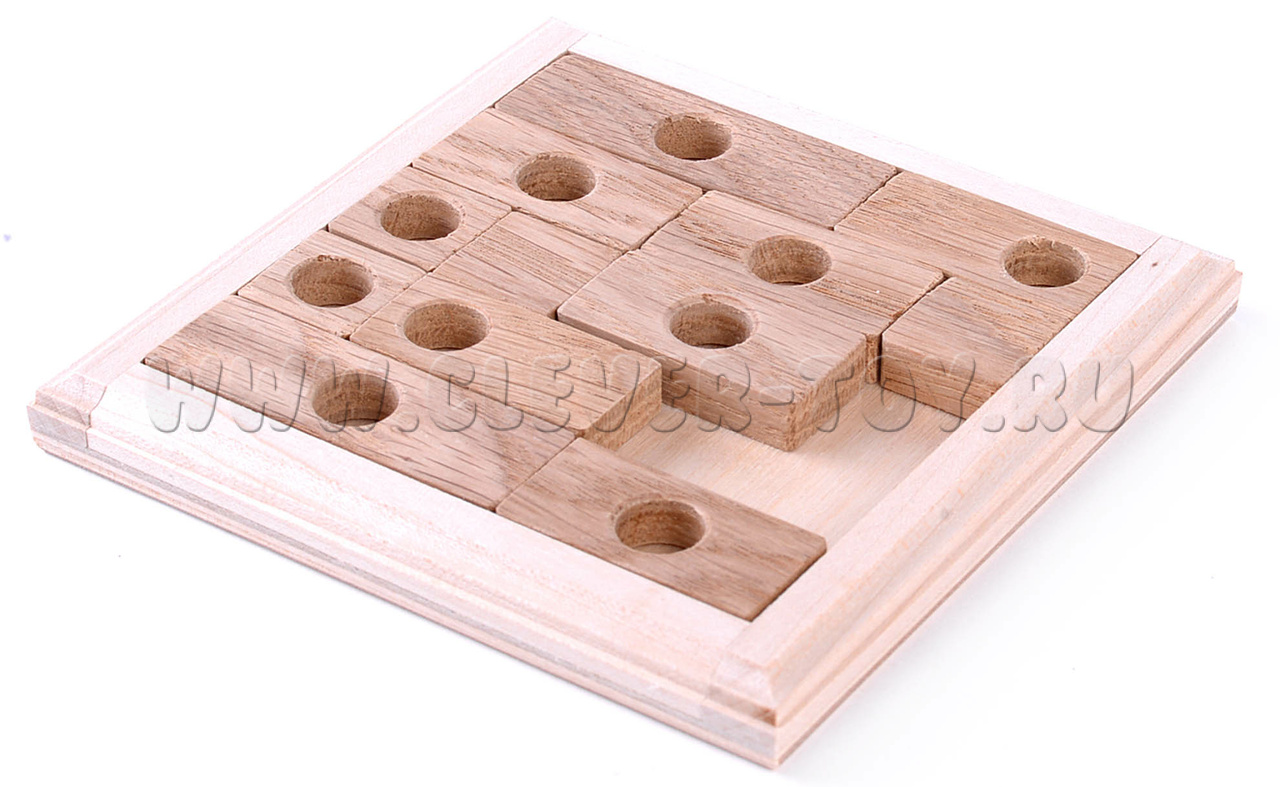 “Мамина головоломка” – логическая задача для тех, кто хочет испытать себя в чем-то новом. Эта головоломка связана с перемещением деталей на деревянной доске за определенное количество ходов. Это задание не из простых и оценивается авторами на 5-6 баллов из 7.