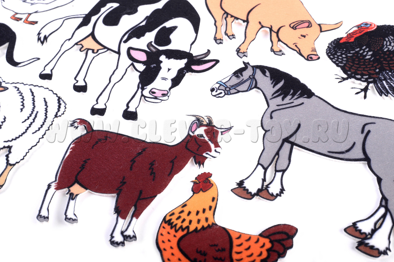 Все фигурки оснащены многоразовыми липучками, благодаря которым животные легко крепятся на игровом поле из фетра или ковролина.
