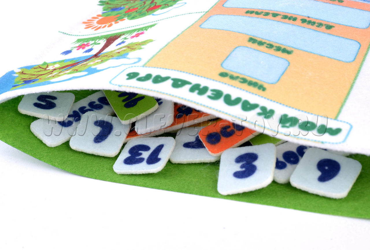 - игровые элементы: числа от 1 до 31, элементы с названиями дней недели, месяцев, времён года и т.д.
