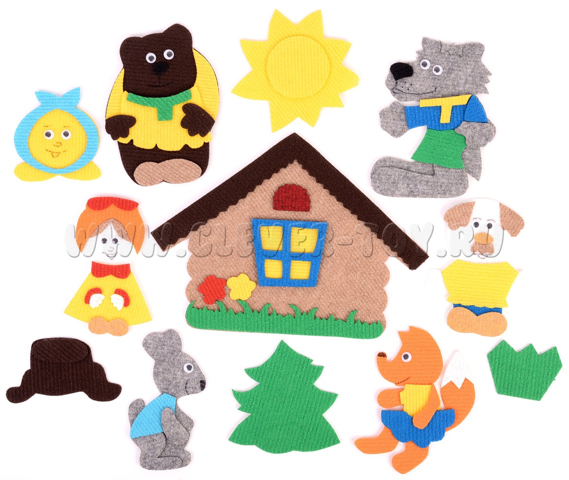 Герои сказки «Колобок» буквально оживают в руках вашего малыша. Ковролиновые герои сказки на липучках: