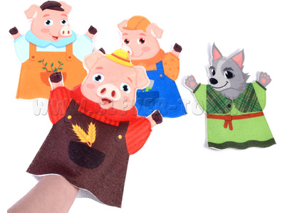Театр на руку "Три поросенка" – многоразовый набор фигурок для разыгрывания увлекательных спектаклей домашнего театра и организации дидактических занятий, нацеленных на развитие речи, памяти, внимания, творческого мышления и артистических способностей.