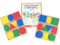 - геометрические фигуры 3-х размеров 4-х цветов (красный, жёлтый, зелёный, синий):квадрат, круг, овал, треугольник, прямоугольник – 60 штук;