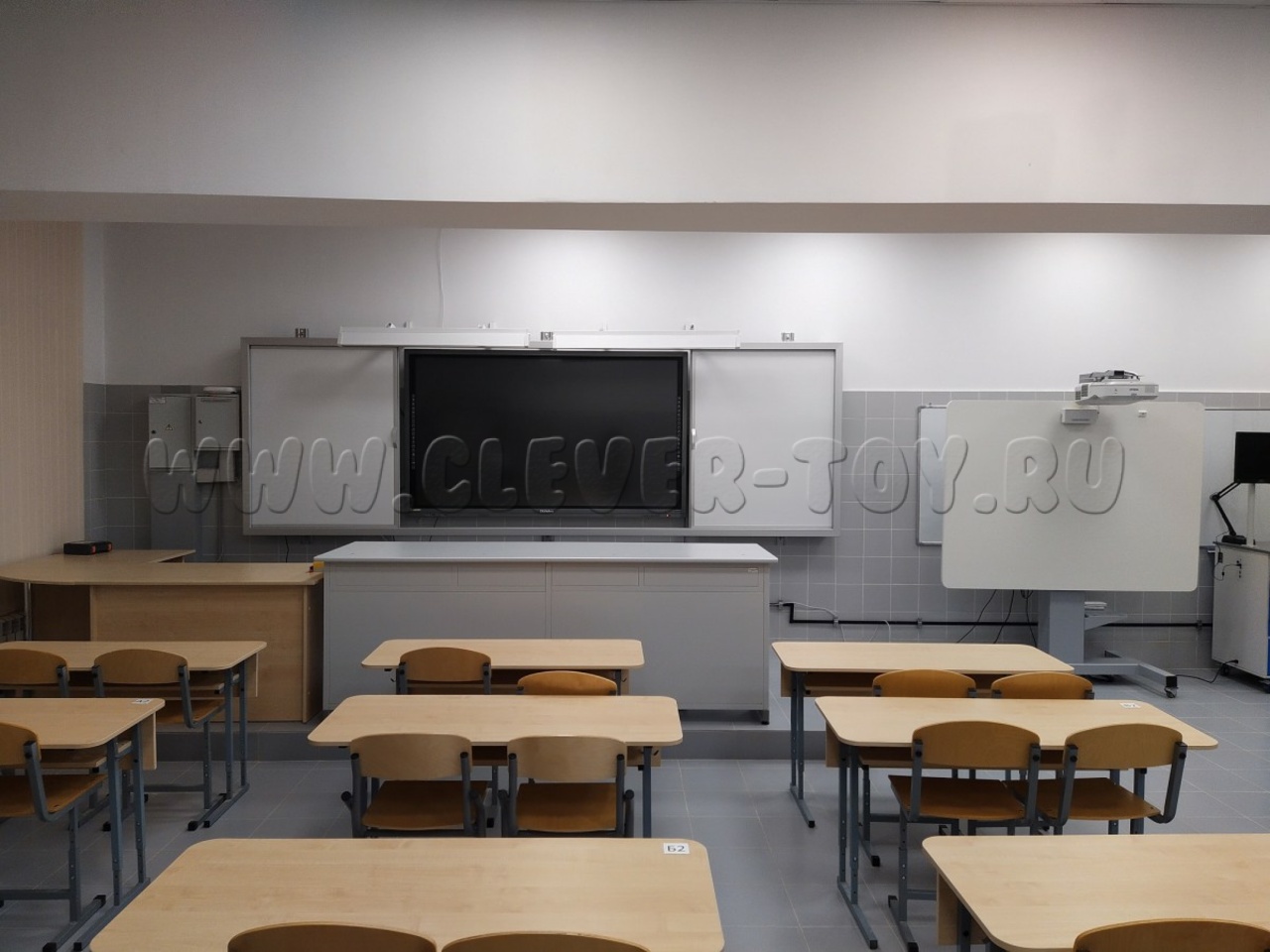Рельсовая система — это цельная конструкция, состоящая из каркаса и четырёх рабочих поверхностей. Покрытие может быть магнитно-меловым, магнитно-маркерным или комбинированным.