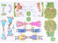 - Действующих персонажей выполненных из плотного картона, созданных для показа настольного театра. Средний размер персонажей, составляет 12 см. (Задача ребенка состоит в том, что нужно вырезать по пунктирным линиям 7 персонажей печку, яблоню, лес, избушку и склеить их);