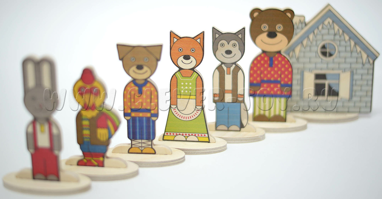 Набор деревянный "Персонажи сказки Заюшкина избушка"