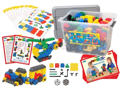 - Конструктор STEM (Шестеренки) Gearphun Starter 600 деталей упакован в пластиковый короб для хранения комплектующих, с закрывающейся крышкой с фиксаторами.