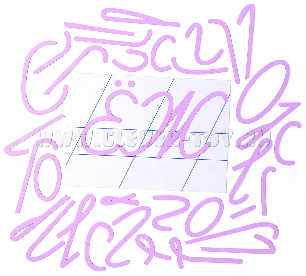 В наборе: 70 магнитных карточек - элементов букв.