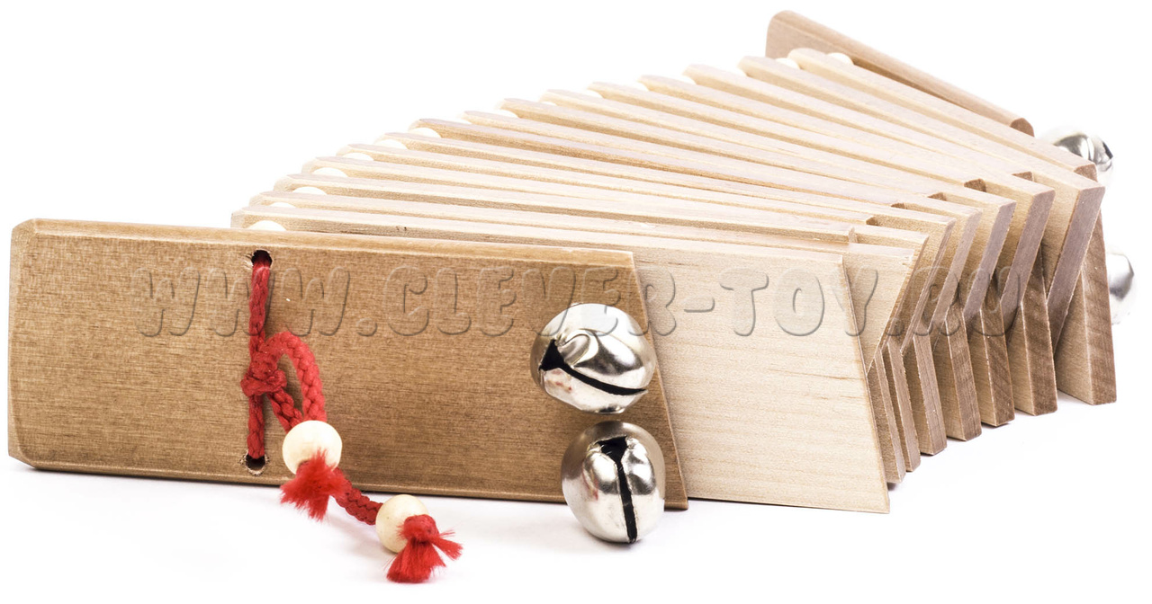 Трещотка пластинчатая "малютка" с бубенцами (дерево тонированное, 2 категория)