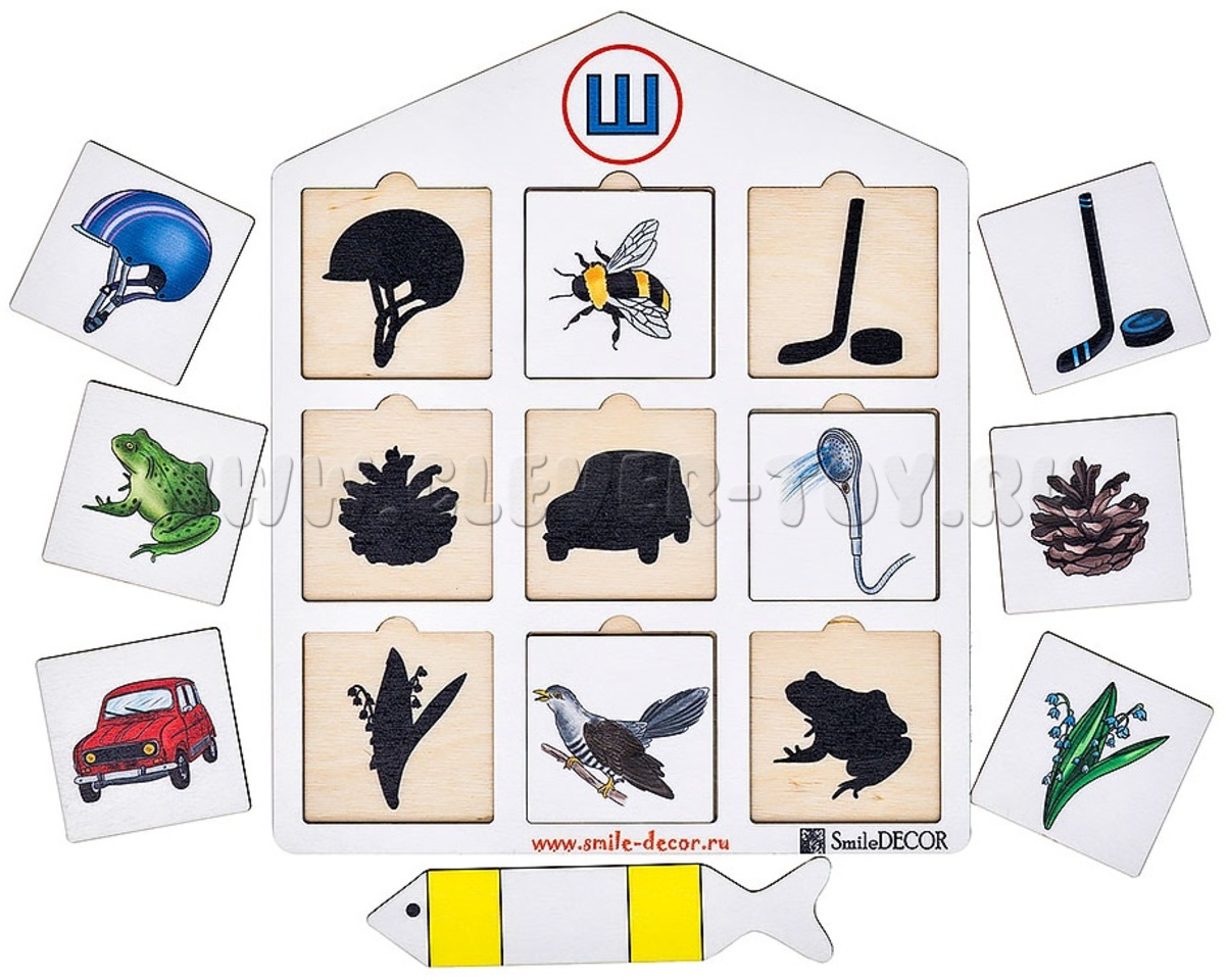 Игра для закрепления произношения звука Ш, для развития речи, зрительного восприятия, внимания, памяти, пространственных представлений, навыков звукового и слогового анализа.