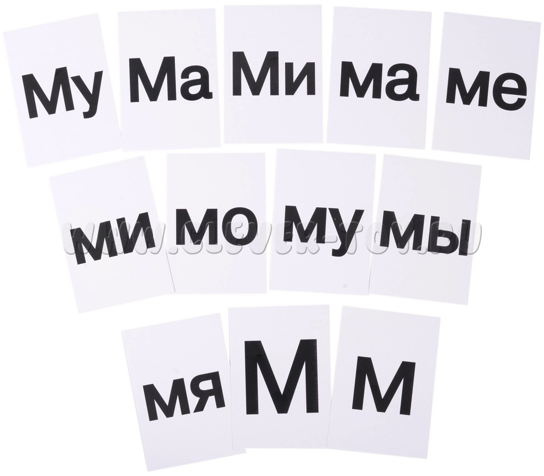 Карточки с буквами (заглавными и строчными), слогами и знаками из картона (7*10 см) общим количеством более 220 шт.