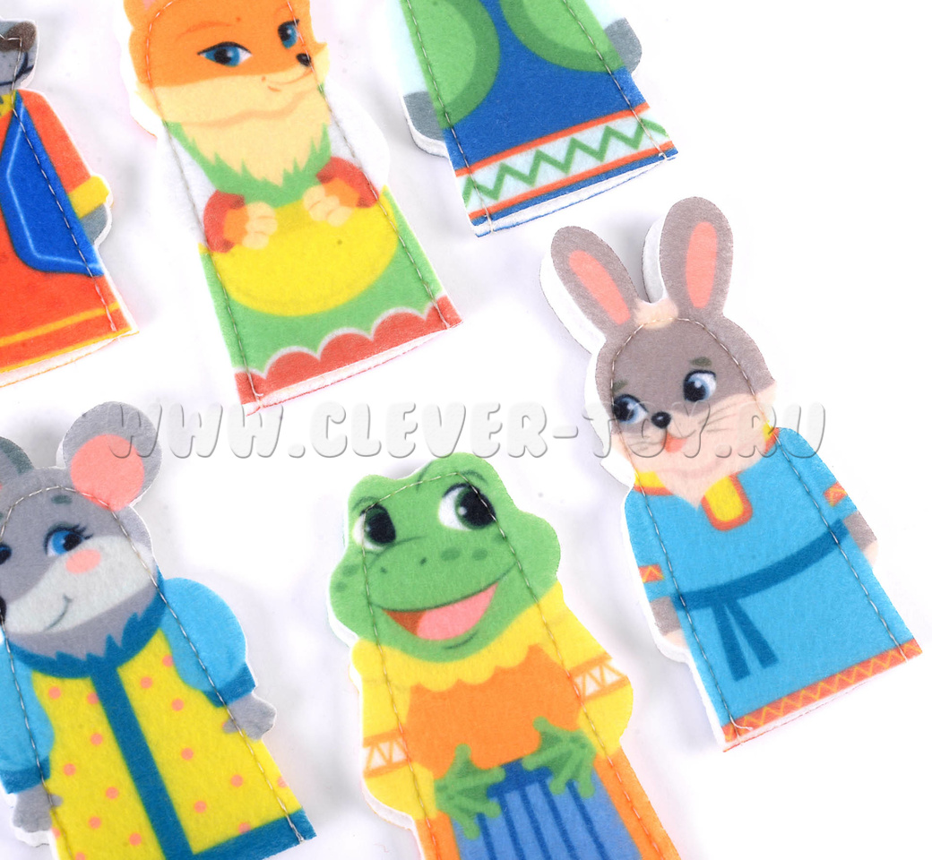 Пальчиковый театр изготовлен из фетра – мягкого, приятного для осязания материала, полностью безопасного для детей.