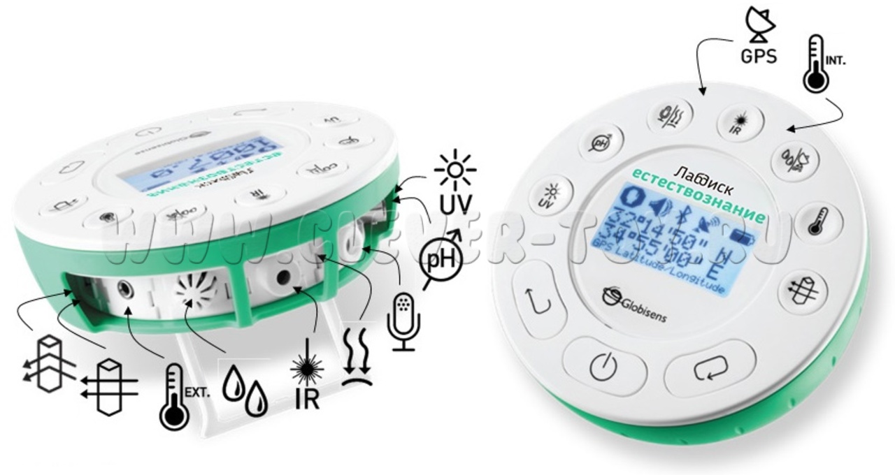 Мобильная естественно-научная лаборатория ЛабДиск обладает мультисенсорным регистратором данных, LCD экраном, на котором отображаются не только результаты измерений, но и такие данные как сетевое подключение, заряд встроенного аккумулятора.